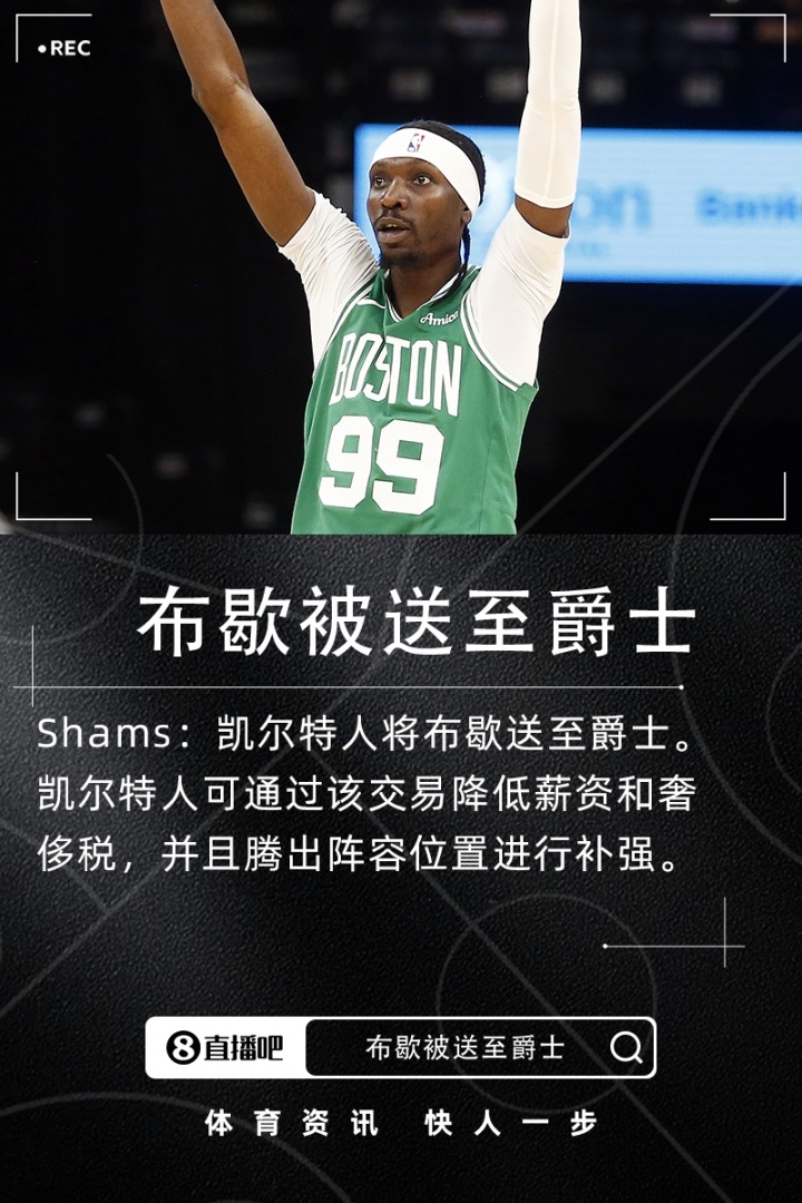 再省一笔钱!Shams:凯尔特人将布歇送至爵士 换一个2027年次轮签