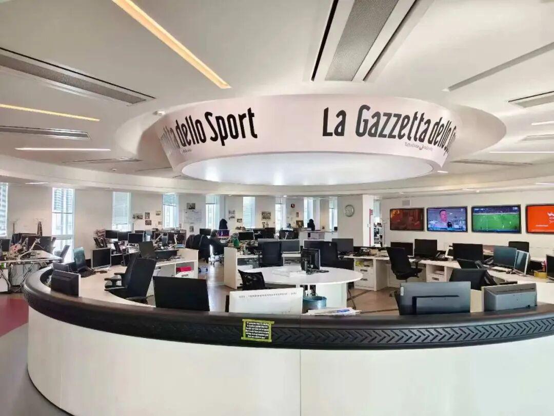 RCS传媒集团的办公区是一个由数栋楼宇组成的园区,其中包括一栋数十层的摩天大楼,是这个区域最高的办公楼了。《米兰体育报》的办公区域并不大,占据了一个低矮楼宇的整整第三层。