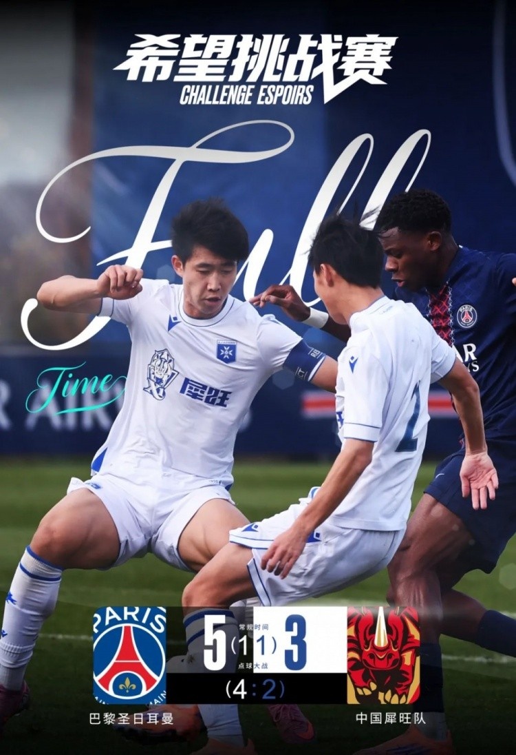 “我们第二场的对手巴黎圣日耳曼U19队实力更不容小觑,他们的传控打法和技战术理念与‘大巴黎’一脉相承。对手在上半场优势明显,先进一球。但下半场我们果断变阵,展示了破釜沉舟的决心,更积极主动地向对手施压,并在最后时刻扳平了比分。我记得他们的球员教练在赛前热身时一脸轻松,感觉没把我们放在眼里,但最后被我们进球后全都傻眼了。所以,只有靠实力才能赢得对手的尊重。”